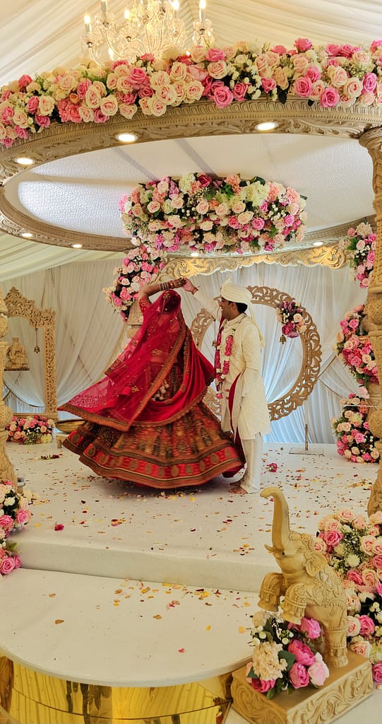 Jasmine and Aron’s Hindu wedding day at the enchanting North Mymms Park was nothing short of extraordinary – an incredible celebration packed with laughter, love, and unforgettable moments. From the early hours of the morning to the final farewell, every detail was meticulously planned and executed, with non-stop excitement, multiple outfit changes, two ceremonies, and a jam-packed itinerary. This was a day that truly celebrated their love and the joy of bringing families together.